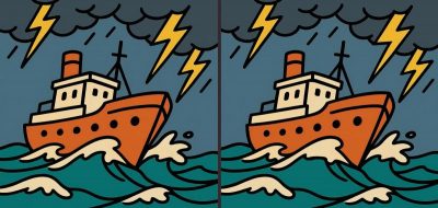 Er du klar for neste utfordring? Ta en nærmere titt på to bilder av et skip som seiler gjennom en storm. Bildene kan se helt like ut, men ikke la deg lure. Det er tre skjulte forskjeller. Trikset er at du bare har 65 sekunder på deg til å finne dem alle. Prøv det og test synsevnen din!
