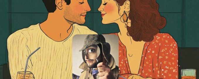 Foran deg er en mann og en forelsket kvinne som chatter hyggelig under en romantisk middag. Jenta er kledd i en elegant kjole, og fyren – i en lett genser. Du kan se på bordet glass med drikke og flere smakfulle retter. Det er malerier som henger på veggene i etablissementet, og lyspærer henger fra taket.